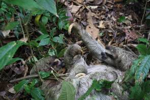 Bei den Kämpfern handelte es sich um zwei Faultiere. Die ersten Aufnahmen entstanden auf dem Weg zum Fort San Felipe und zum Strand. Die nächsten bei meiner Rückkehr. An der Lage der Beiden hat sich nach ca. zwei Stunden nichts geändert. Wäre das ein sportlicher Wettkampf bei uns Menschen, hätte der Schiedsrichter den Kampf wegen „unsportlichen Verzögerns“ abgebrochen und saftige Strafen verhängt. Aber vielleicht haben Faultiere ein anderes Verständnis für Zeit und Geschwindigkeit und für beide ist das eine ganz wilde Schlägerei. Dann steht „Wildtier“ natürlich für das Verhalten der Beiden.