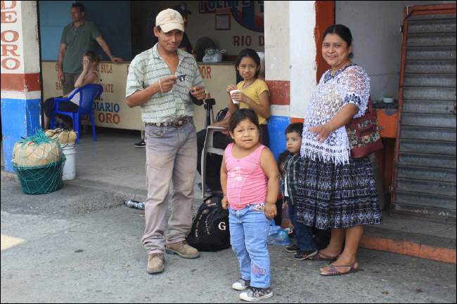Die Familien sind meist zusammen. Seit Wochen bewundern wir immer wieder, wie viele Kinder jeden Alters mit ihren Eltern unterwegs sind, im Bus, in Wartehallen, an den Strassen – fast nie sehen oder hoeren wir sie quengeln oder streiten. Sie spielen wie alle Kinder oder sitzen abwartend auf dem Boden, aber es ist eine harmonische Ruhe und Gelassenheit ueber allem. Die Eltern strahlen dies aus und die Kinder uebernehmen das und sind sehr zufrieden. Wilfried mit seinen weissen Haaren und dem weissen Bart faellt ihnen sehr auf und taeglich zeigen sie auf ihn und lachen. Ob sie wohl denken, er ist der Weihnachtsmann? Vielleicht hoert sich das jetzt an wie heile Welt, ist es natuerlich nicht. Fuer Guatemalteken bedeutet eine grosse Kinderschar die Absicherung des Alters, dessen Grenze uns Europaer aber erschreckt. Durch die muehsamen Alltagsbedingungen und die vielen Geburten sind die Frauen und die Maenner durch harte koerperliche Arbeit in der Landwirtschaft oder in den Urwaeldern frueh alt und ausgemergelt. Die Einschulungsrate betraegt trotz allgemeiner Schulpflicht 69 % und nur wenige Kinder beenden die 6 Jahre dauernde Grundschule. Sie helfen derweil beim Haushalt, hueten die zahlreichen Geschwister und muessen Futter fuer das Vieh holen. Waehrend der Kaffee- und Zuckerrohrernte verdingen sich die Eltern als Wanderarbeiter im ganzen Land. Die Kinder wohnen mit ihnen auf den Haciendas und arbeiten auch da schon in jungen Jahren mit.