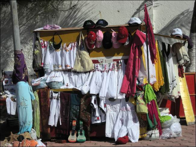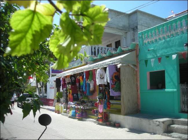 Die Insel ist nicht sehr gross, 7 km lang, 1 km breit und zaehlt ca 15000 Einwohner. Palmen rascheln im Wind und der lange weisse Sandstrand laedt zum Schwimmen ein. Schnorcheln und nahezu jegliche Aktivitaet, die auf und unter Wasser moeglich ist, kann organisiert werden. Isla Mujeres ist sehr beliebt und relativ touristisch wie alle Inseln, die soviel Abwechslung bieten. Es ist jedoch ein sanfter Tourismus, klimatisierte Hotelpalaeste mit Pool wie im gegenueber der Insel liegenden Cancun findet man hier nicht. Meist sind es die Tagesausfluegler von Yucatan, die einen Tag hier verbringen und kurzzeitig die vielen Souvenirlaedchen und Strandbars beleben. Die vielen kleinen Laeden quellen ueber mit bunten Kleidern, Masken und Andenken, gemuetliche Aussenrestauration lockt mit einheimischen kulinarischen Genuessen und kleine Tiquillaerien wollen Dich einladen, auf irgendein Wohl zu trinken.