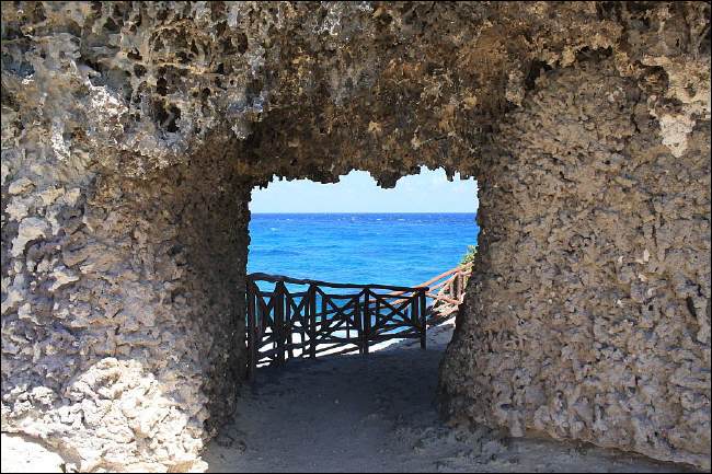 Es gibt auch kaum Sehenswuerdigkeiten im klassischen Sinne, dafuer aber Urspruenglichkeit und ein wahres Unterwasserparadies. Die Inselbewohner sind hauptsaechlich kleine, runde und ueberaus freundliche Mexicaner. Wir mieten uns einen der hier ueblichen fahrbaren Untersaetze (Golfcar) und hoppeln damit einen Tag lang ueber die Insel. Busse fahren hier nicht. Die Orientierung ist einfach, es gibt eine Sued- und eine Nordspitze, die jeweils besonders betont sind und einladen zum Verweilen. Die Aussicht ist an jedem Ende phantastisch. Es gibt einen Skulpturenpark an der Suedspitze und die Reste eines Mayatempels. Noch klein und unspektakulaer - aber erinnert bereits daran, dass wir auf unserer Reise durch Lateinamerika hoffentlich viele antike Staetten besuchen werden. Auf das Eintauchen in die antiken Welten der Azteken und Mayas freuen wir uns besonders. Ihr Nachlass scheint fuer die Ewigkeit geschaffen und erweckt immer wieder die Phantasien und Gedanken an die fruehere Welt. Ein lebendiger Geschichtsunterricht fuer jedes Alter. Wir stehen auch am oestlichsten Punkt von Mexico und werden darauf aufmerksam gemacht, dass wir an dieser Stelle die ersten Menschen am Morgen sein koennten, die die Sonne aufgehen sehen – vorausgesetzt , wir stuenden so frueh auf ! Na, das koennen wir ja leider vergessen, denn das mit dem „frueh“ schaffen wir doch nicht.