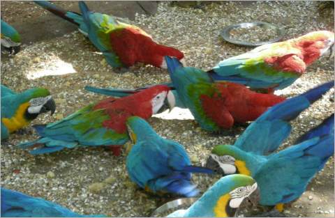 manche Arten sind so unwirklich bunt, daß sie fast wie angestrichen aussehen. Mich faszinieren die blauen Hyazintharas am meisten, aber im Hinblick auf unseren nautischen Wohnraum überlege ich nicht, daß es mir sehr gefallen würde, einem so schönen bunten Tier ein Zuhause zu geben.