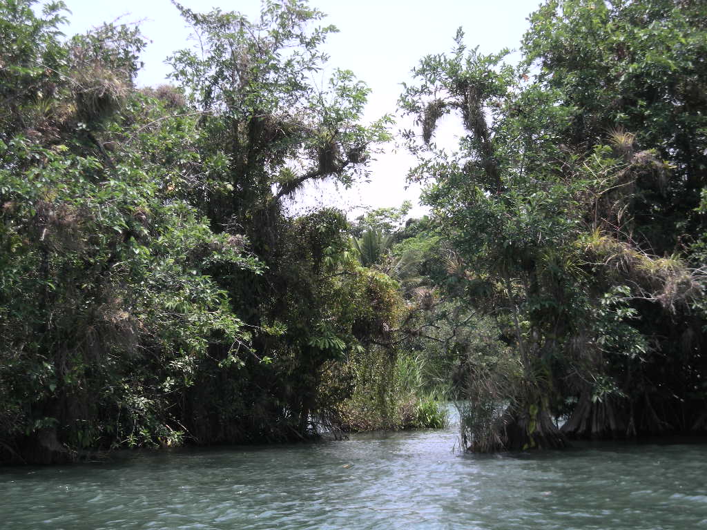 Gleich in der ersten Woche haben wir ein Sonnenschutzdach in Auftrag gegeben, die vorhandenen Abdeckungen lassen bei diesen Temperaturen kein friedliches Bordleben zu. Wir leben uns langsam ein und erledigen nun alles mit dem Dingi, denn Strassen im Dschungel gibt es keine. Zum Einkaufen fahren wir zur Siedlung Fronteras, ca. 15 min. dauert die Fahrt mit dem Gummiboot und bei Brunos Restaurant liegt es gut und sicher, waehrend wir einkaufen in dem heissen, staubigen und quirligen Ort.