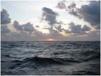 Jede Bewegung meinerseits verstärkt die Übelkeit, aber wir scherzen auch über mein ko. Ab dem 3. Tag bin ich jedenfalls auch einsatzbereit und muß die Nachtwache nicht mehr Wilfried allein überlassen. Es sind ruhige Wachen, nachts ist ab und an in der Ferne ein Schiff zu sehen. Ich gucke abwechselnd mal aufs Meer oder auf den Radarschirm.