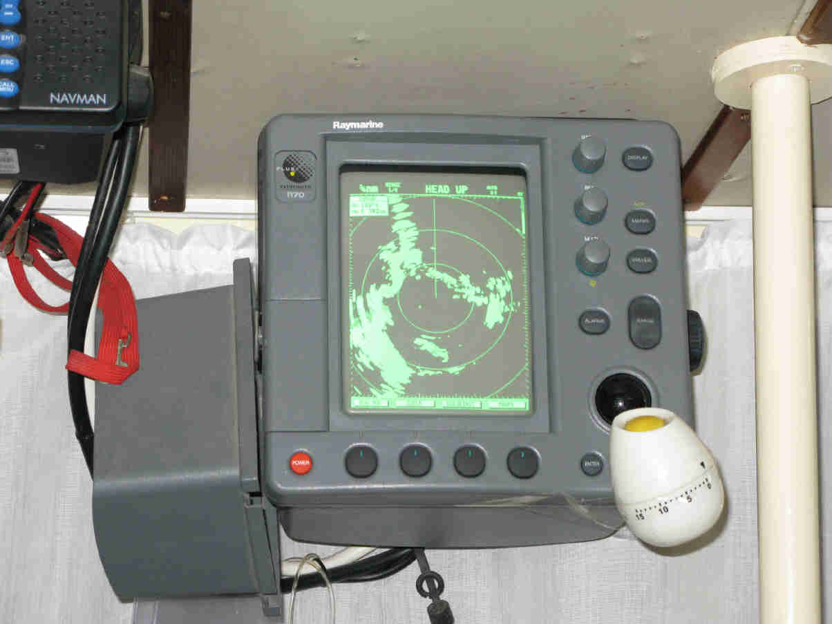Unser wichtigstes Navigationssystem in der Nacht ist die .... Eieruhr. Obwohl wir die besten Absichten haben wach zu bleiben während unserer Nachtwache, damit wir keine großen Fähren oder Frachter umfahren, wollen wir den menschlichen Faktor Müdigkeit mit einbeziehen. Wenn du allein draußen sitzt, das Boot so schön und gleichmäßig schaukelt und es außer staunen, freuen und gucken nichts zu tun gibt, erinnert sich der Körper daran, daß er eigentlich jetzt gerne schlafen möchte. So stellen wir die Eieruhr um zu gewährleisten, daß wir nicht einschlafen. Ein wenig dösen zwischendurch geht, zumal das Geräusch der Uhr dich dann rasch munter macht und dich an deine Wachsamkeit erinnern muß.