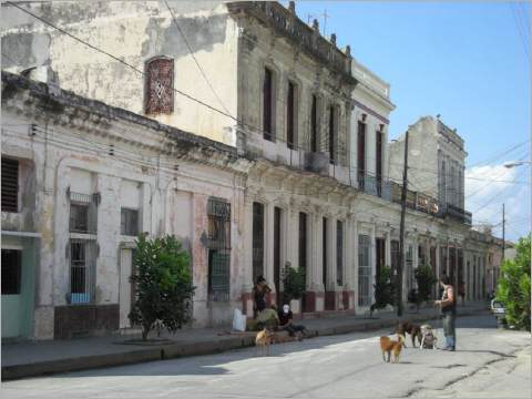 Kuba ist ein Land der größten Gegensätze und das bemerken wir bereits in dieser ersten Stadt auf unserer Reise. Ein paar Straßen weiter bereits sieht es bereits total anders aus. Dort kann man noch deutlich den ehemals aufwendigen Baustil erkennen, aber seit der Revolution vor 50 Jahren ist kein Geld mehr für Erhaltung oder Renovierung ausgegeben worden. Die Häuserzeilen sind alt, heruntergekommen und teilweise ziemlich verfallen. Aber dennoch bewohnt. Da die hohen Türen und Fenster fast überall offenstehen wegen der Kühlung, siehst du, daß es innen sehr einfach, aber sauber und wohnlich eingerichtet ist, was im krassen Gegensatz zur äußeren Fassade steht. Die Häuser sind staatlich und was die Bewohner machen können im inneren Bereich, das versuchen sie mit wenig Geld und viel Kreativität – Cienfugeos ist nur ein Beispiel dafür, wie es in dem gesamten Land aussieht.