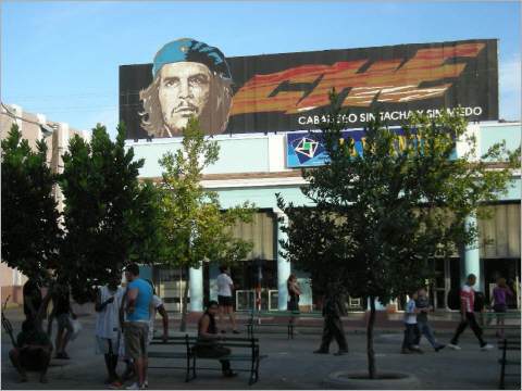 Überall lacht ein Konterfei von Fidel Castro oder Che Guevara der Menge entgegen und statt Graffiti sind meterlange Mauern voll bemalt und beschriftet mit Zitaten und Ratschlägen des großen Meisters Fidel .
