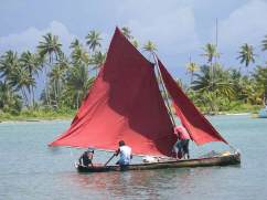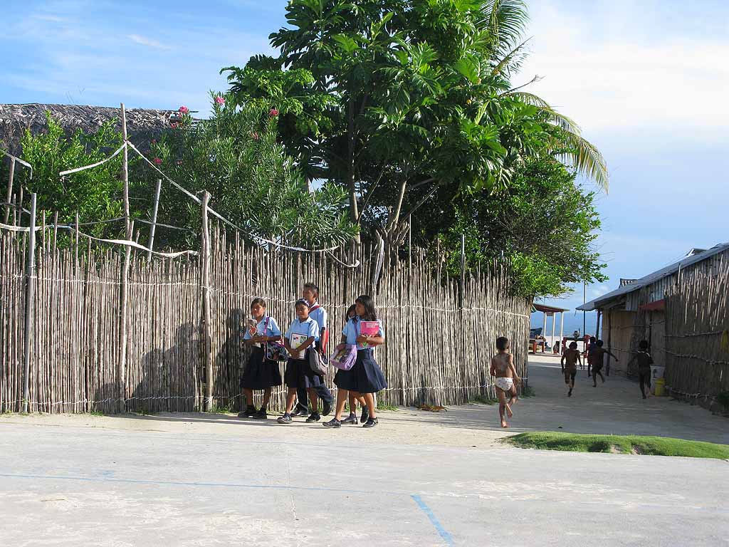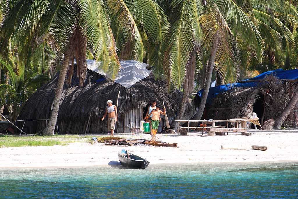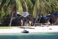 Morgens frueh, wenn es hell wird, ist das Aufheben von Kokosnuessen die erste Arbeit und das Fegen der Straende und Wege zwischen den wenigen Huetten. Einige Maenner paddeln zum Festland um Trinkwasser zu holen., andere begeben sich auf Fischfang.