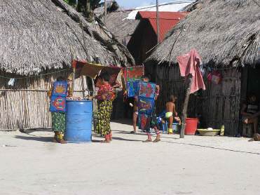 Die meiste Zeit spielen Kinder auf der Landebahn Fussball, sonst gibt es keine Strassen, nur sauber gefegte Sandwege. Soviele Fluege gehen nicht ab hier und wenn es denn soweit ist, genuegt ein Pfiff und die Bahn ist frei. Wie spaeter ueberall auf den Inseln geht es auch hier sehr beschaulich zu. Die Kunas sind ein sehr freundliches, bescheidenes Volk. Stress scheint hier niemand zu kennen.