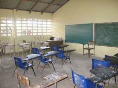 Zum einheimischen Baustil gehoeren die im Wasser stehenden Toiletten, so auch die Schul-WC's.