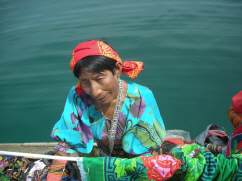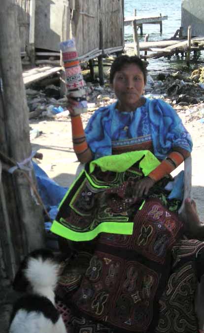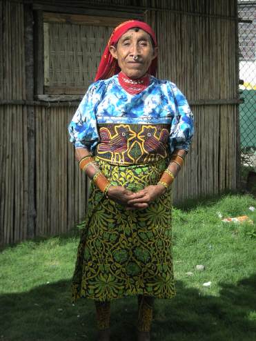 Die Frauen der Kunas sind wunderschoen anzusehen in ihren bunten traditionellen Gewaendern, die der frueheren Koerperbemalung entsprungen sind. Den katholischen Missionaren war die natuerliche Nacktheit geschmueckt mit kunstvollen Tatoos und Bemalungen mit Farben, die die Natur so reichhaltig anbot in Pflanzen und Wurzeln, ein Dorn im Auge. So dass diese kreative Bekleidung einer aus Stoff weichen musste.