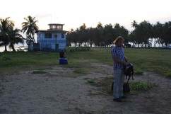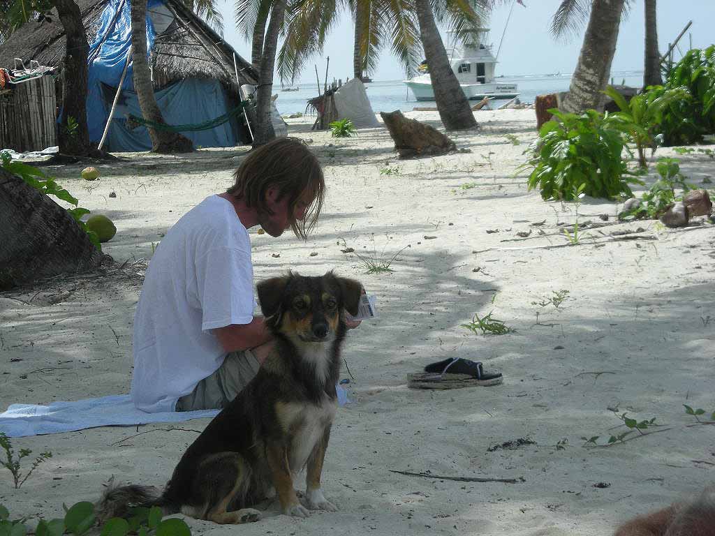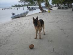 Als wir keine Lust mehr haben und ihn ignorieren , wirft er die Nuss immer naeher an und dabei auch auf unsere Fuesse. Spaetestens da merkt man den Unterschied zwischen einem Ball und einer Kokosnuss. Wie der Leser unschwer erkennen mag, sind wir mit lauter wichtigen Dingen beschaeftigt, nicht wahr? So lebt es sich eben, wenn man lauter kleine Paradiese vorfindet. Meer, Palmen, weise Sandstraende .............. und Hunde, die mit Kokosnusswerfen beschaeftigt werden wollen.