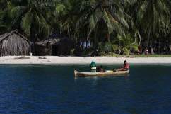 Der Nachmittag und der Abend gehoeren der Familie und den Haengematten. Unterbrochen wird diese Zeit nur von kleinen Ausfluegen per Einbaum zu den vereinzelt dort ankernden Segelbooten, um ihnen Fisch oder Molas anzubieten oder nach Bonbons, Keksen und Cola zu fragen. Selbst fuer die Erwachsenen sind das besondere Koestlichkeiten, die sie nirgendwo kaufen koennen.