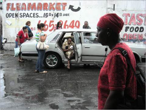 Ein ganz normales Straßenbild auf dem Heimweg. Wir sitzen im Maxi-Taxi und sind froh, daß wir nicht selbst mit dem Auto fahren müssen..... Die Kanalisation ist überfordert, die Straßen oft in einem schlechten Zustand.