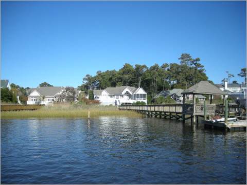 Immer noch zeigt sich Mutter Natur in schoenster Weise entlang des Ufers, mittlerweile werden die Oerte wieder belebter. Wir koennen wieder endlos staunen ueber die Vielfalt der Bauweise und Gestaltung der Haeuser und Grundstuecke. Jedem ist ein Steg angebaut, der zum Haus fuehrt und meist ist am Ende des Steges im Wasser ein sehr gemuetlicher Sitzplatz gerichtet fuer die vielen Stunden des Angelns oder Relaxens. Wer dort wohnt, hat auf jeden Fall einen wassertauglichen Fahruntersatz vom Kajak angefangen, Dingi, Motorboot oder Segelschiff. Es ist alles nicht so edel und protzig wie in Miami, dafuer viel mehr das normale Leben und Vergnuegen