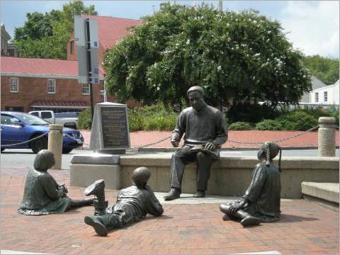 Das Denkmal von Kunta Kinte erinnert daran. Die TV-Serie ‚Roots’ erzaehlte in den 80iger Jahren davon. Der heute noch lebende Schriftsteller Alex Haley hatte die Ahnenreihe seiner Familie erforscht und ihre Geschichte aufgeschrieben zu einer Zeit, in der dieses Thema und dessen Aufarbeitung in der Oeffentlichkeit noch sehr heikel war. Fuer sein Epos bekam er den Pulitzerpreis. Kunta Kinte war der erste seiner Ahnen, der in Annapolis an Land gebracht und auf dem Sklavenmarkt verkauft wurde