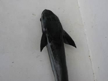 Es gab noch mehr Besuch auch an der Angel. Frischer Fisch war keine Mangelware. Doch eines Morgens nach der Freiwache als ich die Augen aufmachte, sah ich erstaunt einen eifrig draußen putzenden Käpt´n – das gegen 8 Uhr morgens? Das Surren der Angel hatte fette Beute versprochen. Sie entpuppte sich als „Schiffshalterfisch“. Den kannte ich noch nicht und erfuhr nun, daß dies ein Fisch ist, der sich mit seiner Saugplatte an einen „Gastgeber“ ansaugt und ihn von Parasiten befreit.