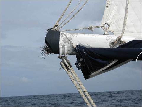 Im Eifer des Ablegeprozederes dachten wir uns auch noch nichts dabei, es wunderte uns jedoch, daß sie mal am Mast, mal am Segel oder fliegend in der Luft uns hinausbegleiteten aus Domburg. Erst auf dem Meer waren sie weg. O je, was sahen wir da später aus dem Baum herauslugen? Viele kleine Hölzchen und Blätter, die hatten sie fleißig gesammelt während unseres Aufenthalts in Domburg. Ein fast fertiges Nest rutschte so nach und nach heraus. Das tat uns sehr leid, daß sie das nicht mehr für ihre Familiengründung nutzen konnten. Erleichterung , daß noch kein Nachwuchs drinnen lag, wir hätten ja die Kinder entführt und die Familie entzweit. Und ob wir ihnen das Fliegen hätten beibringen können? So ist das nochmal gut gegangen und sie werden hoffentlich schnell ein neues Nest bauen.