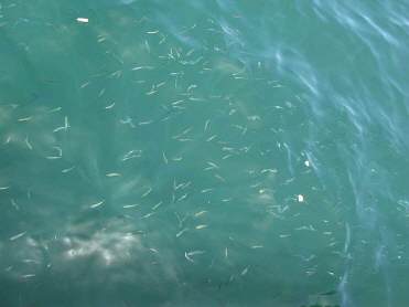 Der Kühlschrank schenkt uns wieder erfrischende Kühle, das entsprechende Ersatzteil war vorrätig im Laden und schnell eingebaut. Der Rest hat Zeit. Es gibt soviel zu Gucken. Neue Haustiere erscheinen täglich. In wunderschönen bunten Farben schillern die Hornhechte neben dem Boot im Wasser und scheuchen Scharen von kleinen Fischchen,
