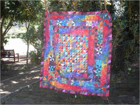 Zu allem Überfluß wurde ich noch kurzfristig vom Quiltvirus überfallen... für die Leser, die nicht wissen, was Quilten bedeutet: frau zerschneidet Stoffe in winzige Stückchen, um sie dann mühsam und kunstvoll auf verschiedene Weise wieder zusammenzunähen für z.B. eine wunderschöne Decke. Das braucht natürlich jede Menge Werkzeug, Stoffe, Vlies usw. und ..... eine Nähmaschine!